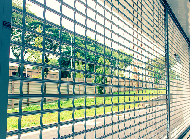 • Durability and smooth operation: Unlike the conventional Roller Grille systems, the horizontal transomes are full-length solid aluminium sections which, together with the strong, snug-fitting vertical links, enable the door to span beyond 3 metres without sagging. The links are also designed with a limited hinging arc to eliminate jamming of the door due to link displacement.